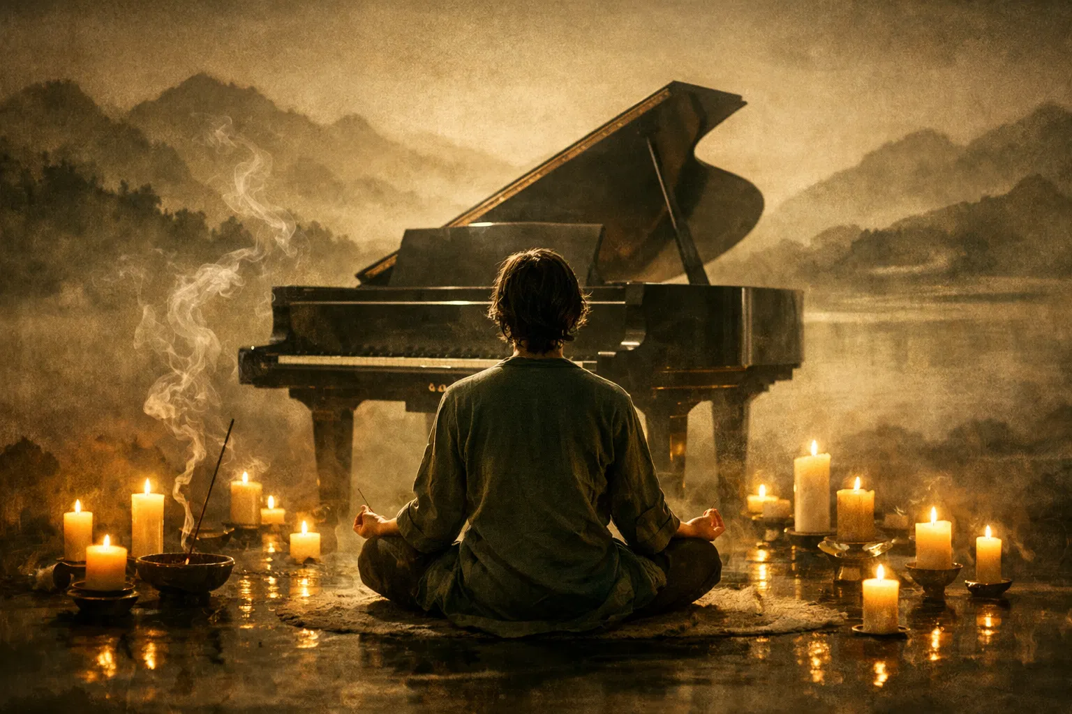 Before your fingers touch the keys, your mind must find stillness. We cultivate the meditative state that allows music to flow through you rather than from you — dissolving the barrier between player and instrument.